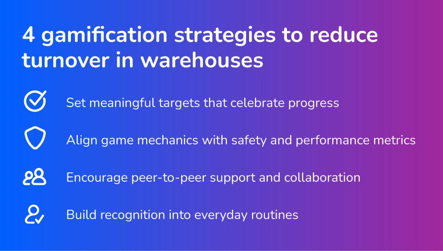 In warehouse environments, safety is as important as productivity. Gamification can reward not just speed, but smart, safe behaviors that reduce accidents and absenteeism (which also contribute to turnover).