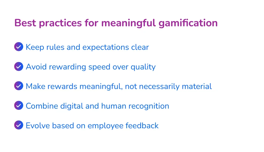 Competition is powerful, but not always suitable for every team. A modern gamification strategy should encourage healthy challenges, not pressure or rivalry.